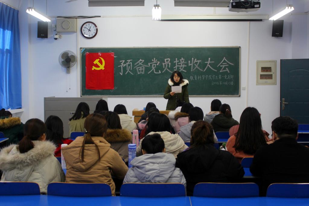 12月13日中午,西安文理专修学院学生第一党支部在9203教室召开预备党员接收大会。学生第一党支部书记卢璐洁主持会议。支部全体党员、预备党员参加会议。