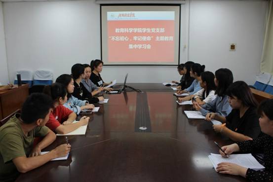 9月23日晚,西安文理专修学院学生党支部在零号楼十楼会议室举行“不忘初心、牢记使命”主题教育集中学习会议。学生第一党支部、学生第二党支部全体党员参加会议。